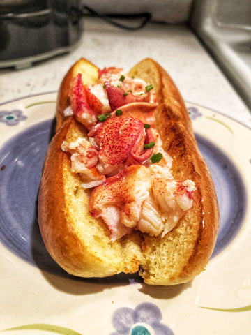 Lobster Roll- toast split top bun, in my case a brioche split top roll. In small bowl, toss claw and knuckle meat with warm drawn butter, and place in roll, top with chives as garnish.